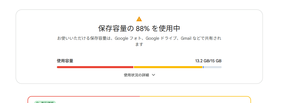 ある日突然、「googleドライブストレージの容量が不足しています」という通知が届... -